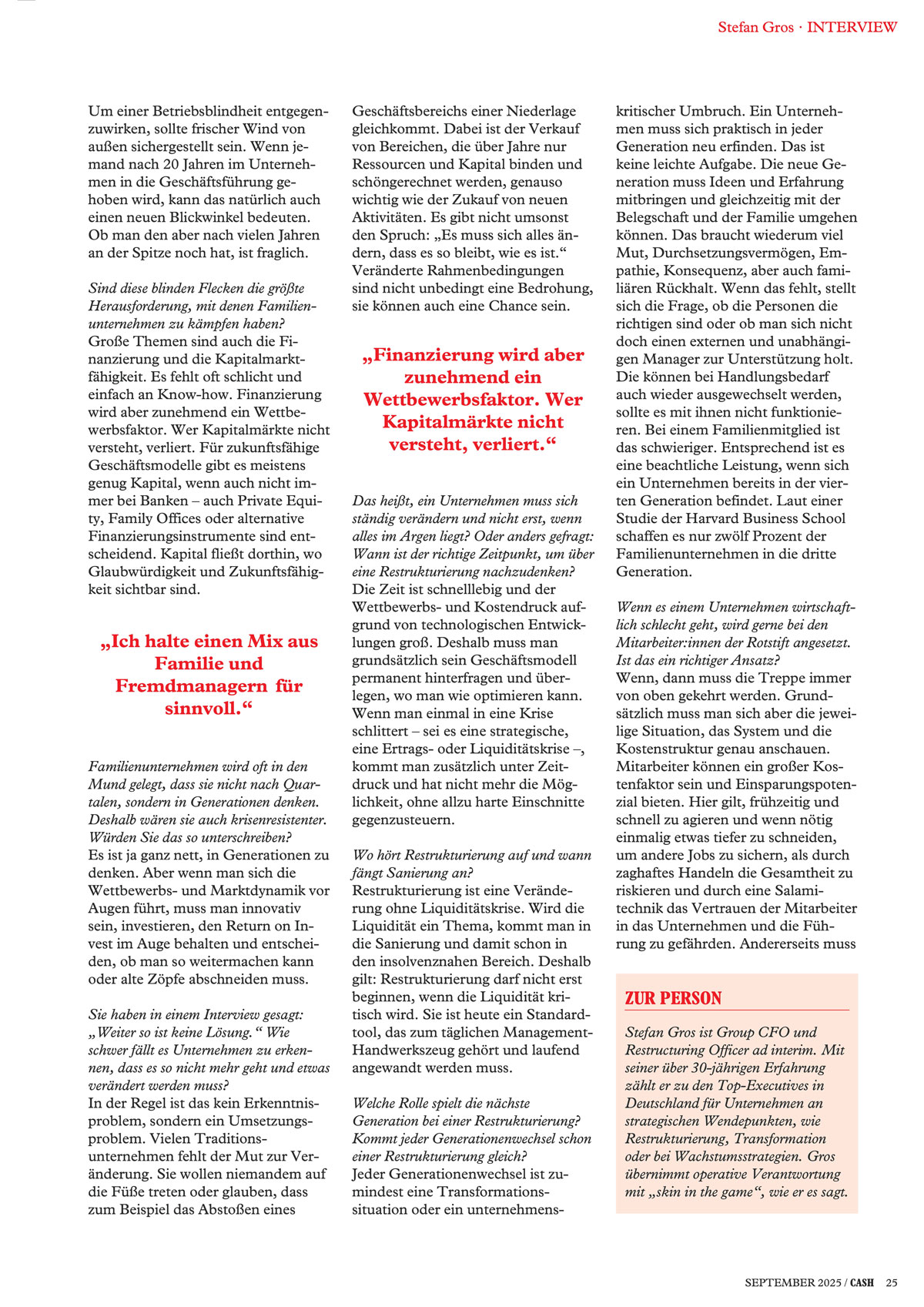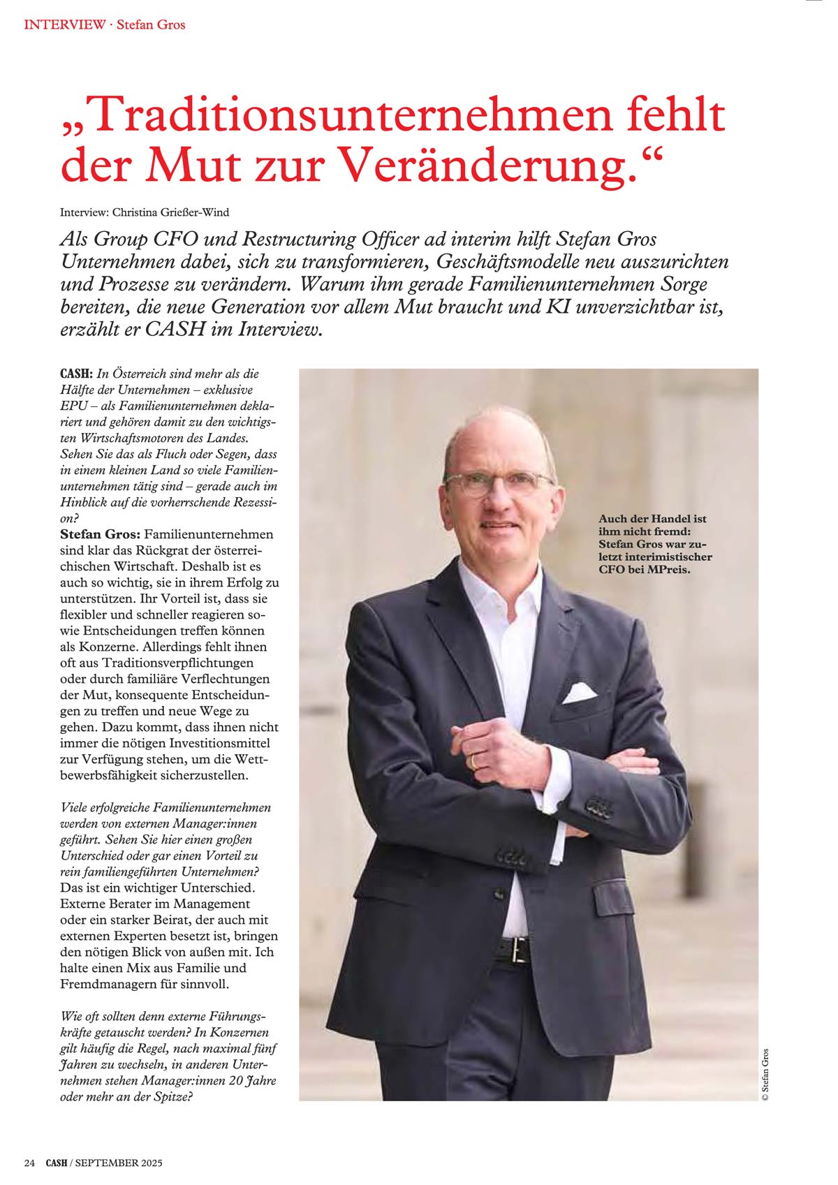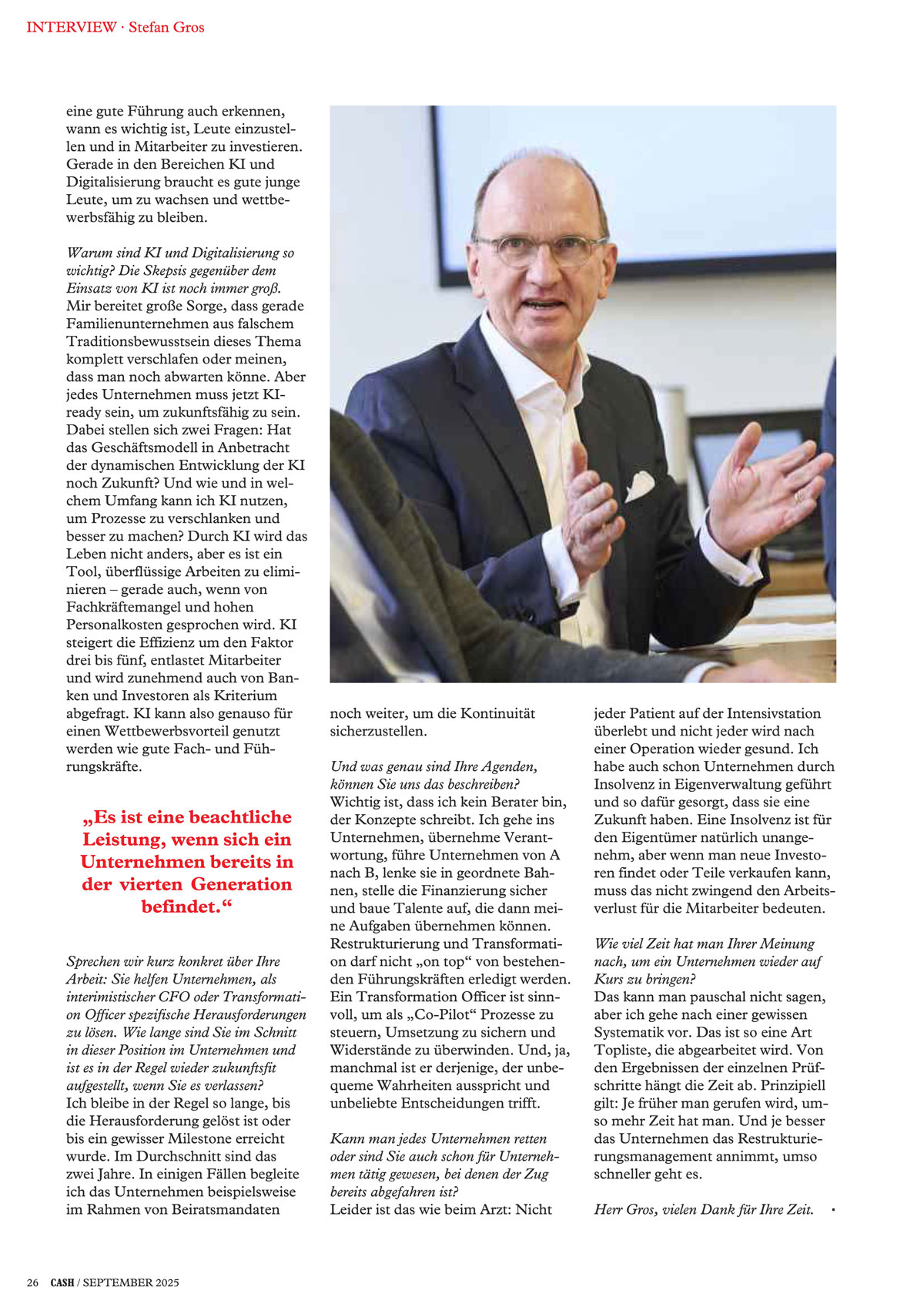 Ein Interview mit Dr. Stefan Gros in der Zeitschrift »CASH«, September 2025